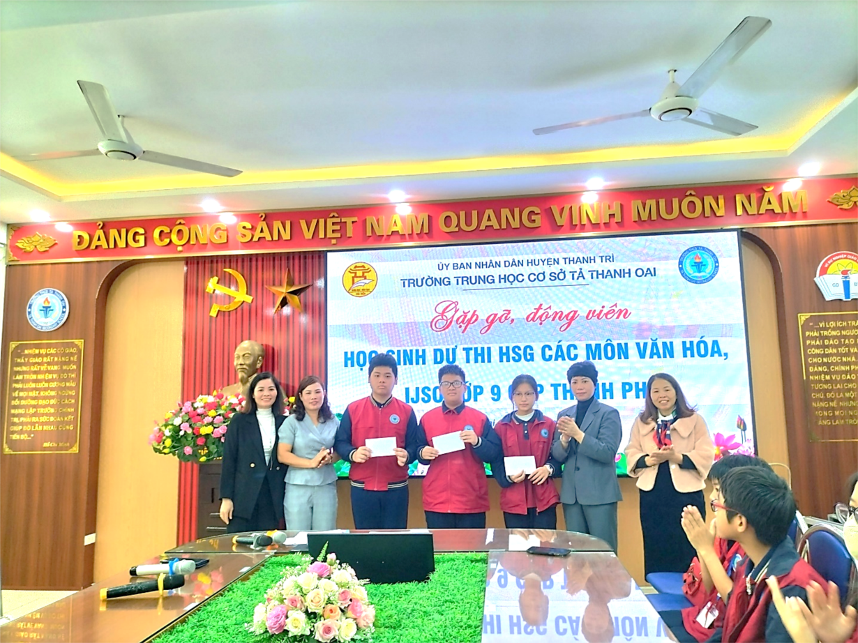 Sáng ngày 18 tháng 1 năm 2024, BGH trường THCS Tả Thanh Oai đã phối hợp với CMHS tổ chức buổi gặp mặt nhằm động viên, khích lệ tinh thần của các em học sinh trong các đội tuyển dự thi HSG Thành phố các môn văn hóa lớp 9 và hai học sinh dự kỳ thi Toán học Hoa Kỳ AMC 8 năm học 2023-2024.
