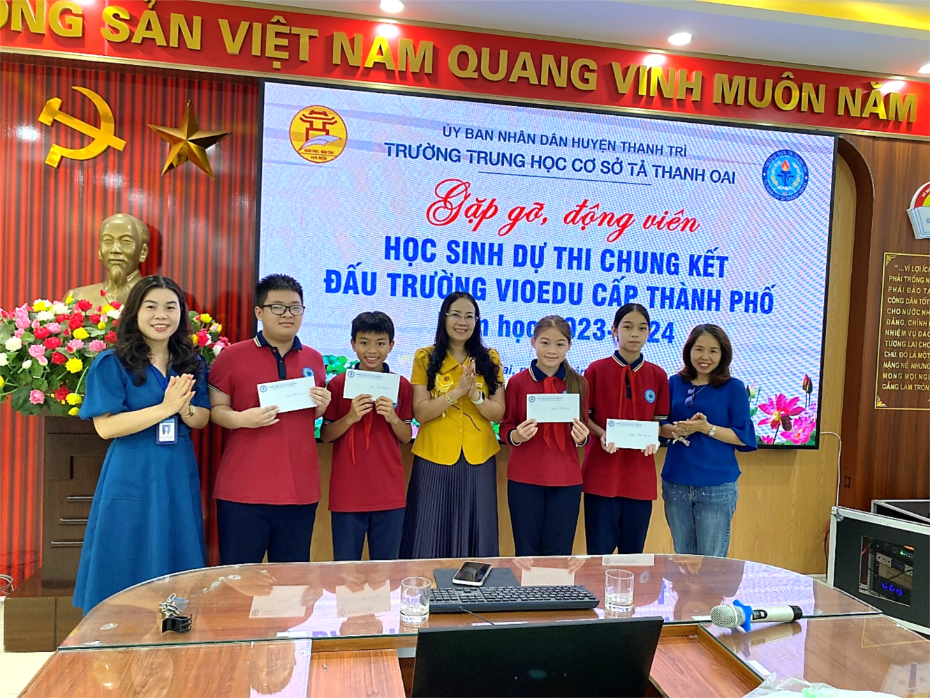 Ngày 3/5/2024, Ban giám hiệu trường THCS Tả Thanh Oai đã có buổi gặp mặt 4 em học sinh dự thi chung kết Đấu trường VioEdu cấp Thành phố năm học 2023-2024.