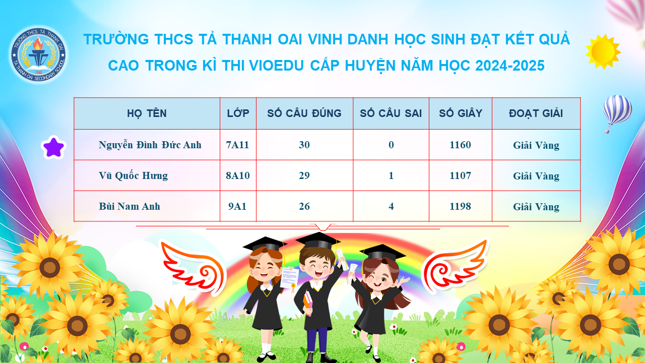 lĩnh của mình trên một sân chơi học thuật uy tín. Nhà trường tự hào khi có 5 em