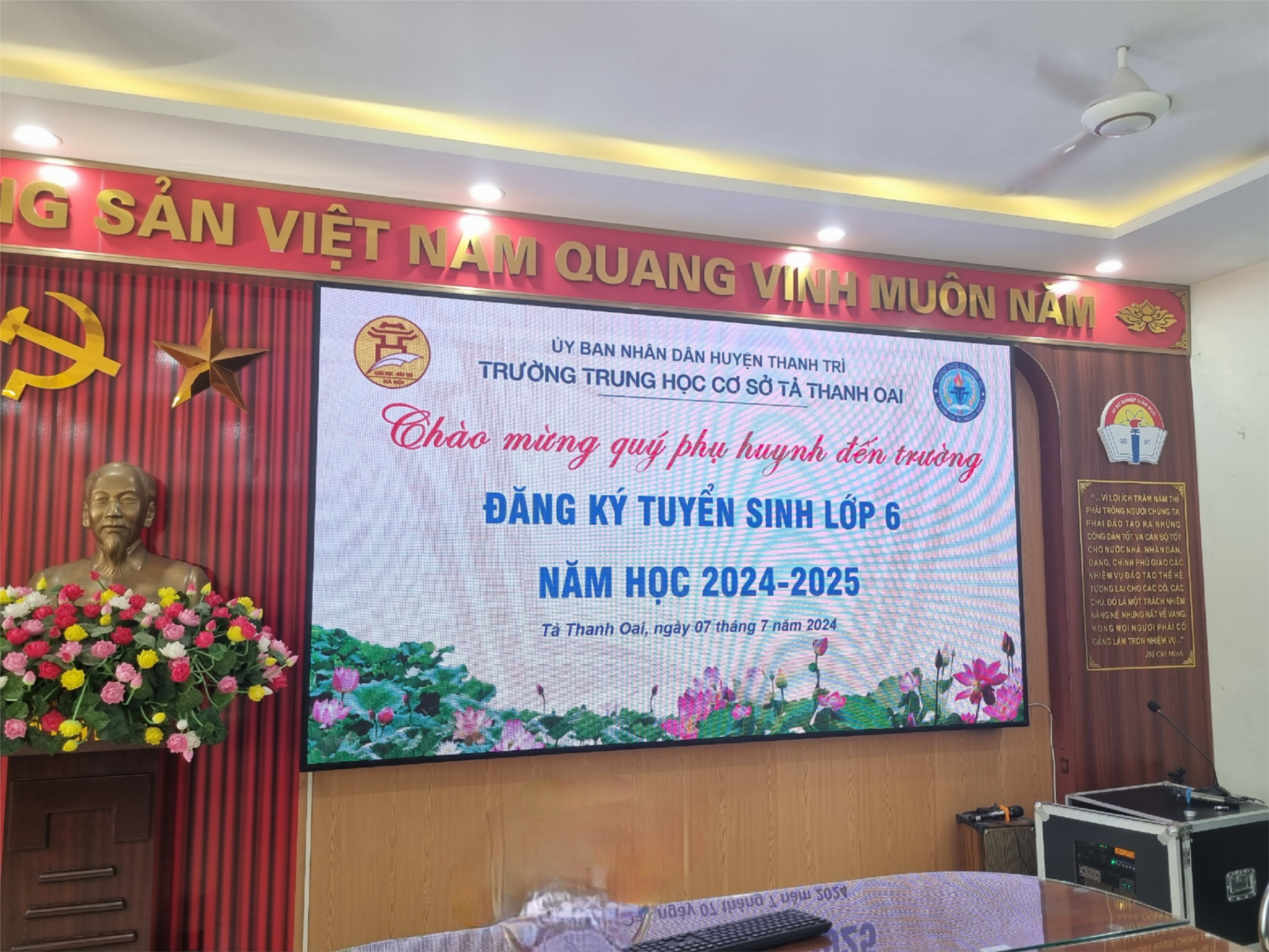 Sáng ngày 07/7/2024, cùng với các trường THCS trên địa bàn thành phố Hà Nội, trường THCS Tả Thanh Oai bắt đầu tổ chức tuyển sinh trực tuyến vào lớp 6 năm học 2024 – 2025. Kết thúc ngày đầu tiên HĐTS đã hỗ trợ được 459 hồ sơ, đạt tỉ lệ 63%.