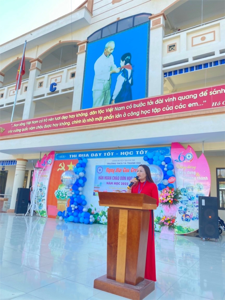 Thay mặt cho toàn thể các thầy cô giáo, cán bộ, nhân viên nhà trường, cô giáo Đào Thị Phượng - Bí thư Chi bộ, Hiệu trưởng nhà trường đã gửi đến các em lời chào đón nồng nhiệt và yêu thương nhất.