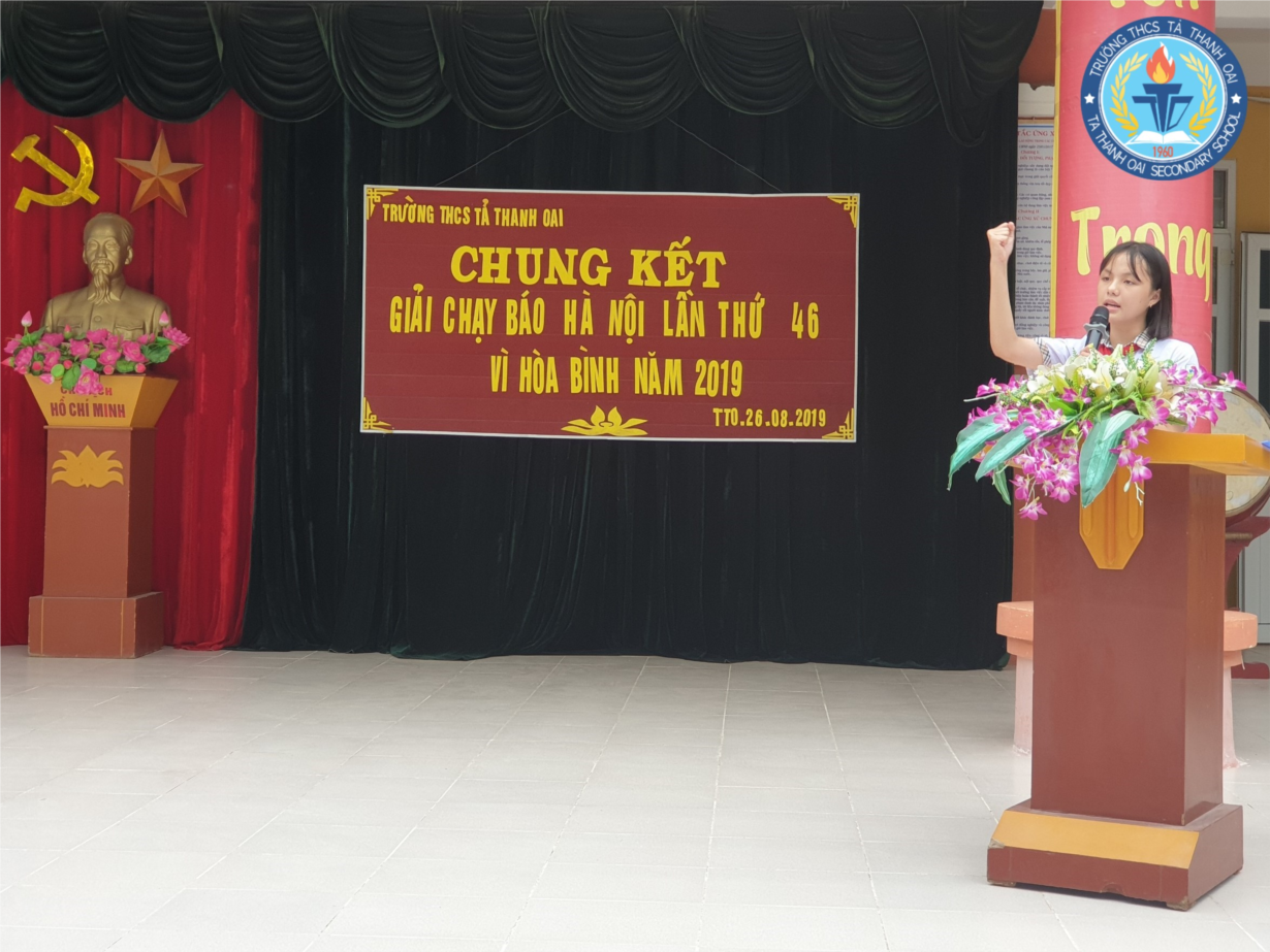 Với những ý nghĩa thiết thực đó, ngay từ đầu năm học trường THCS Tả Thanh Oai đã xây dựng kế hoạch tổ chức giải chạy Báo Hà Nội vì hòa bình năm 2019, vòng loại đã diễn ra từ ngày 16/08/2018 đến 24/08/2018 với sự tham gia thi đấu của hơn 1029 học sinh từ khối 7 đến khối 9, mỗi lớp tuyển chọn được 6 học sinh có thành tích cao nhất tham gia thi chung kết cấp trường, từ đó lựa chọn được những em học sinh có thành tích xuất sắc nhất tiếp tục luyện tập chuẩn bị tham gia thi đấu cấp Huyện, Thành phố. Và hôm nay, trong không khí vui tươi, phấn khởi, thầy và trò trường THCS Tả Thanh Oai tổ chức Chung kết giải chạy Báo Hà Nội mới lần thứ 46 cấp trường – vì Hòa Bình năm 2019.